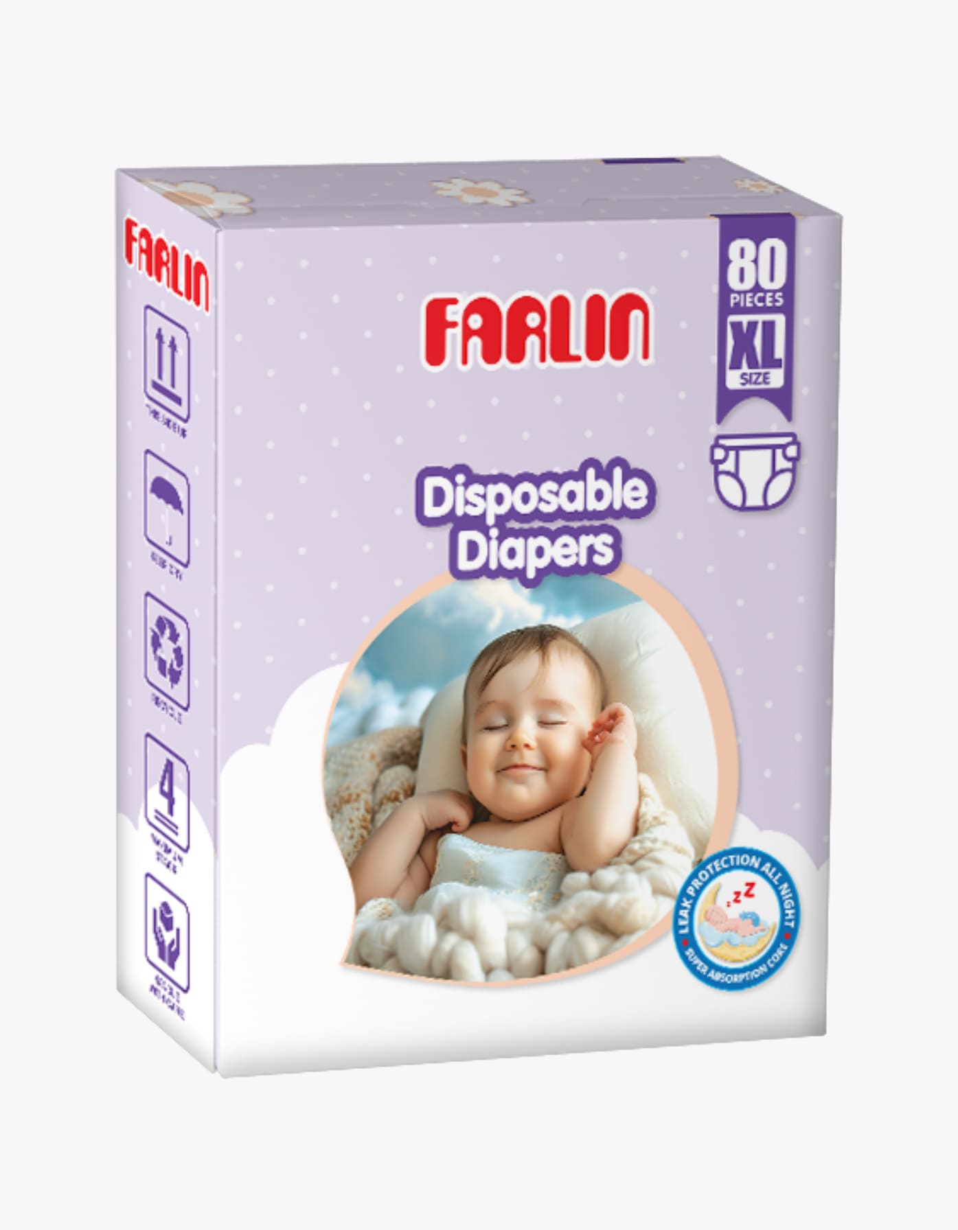 Farlin Disposable Baby Diapers – XL (80 PCs) are the perfect solution for toddlers, offering maximum absorbency and comfort for day and night protection.